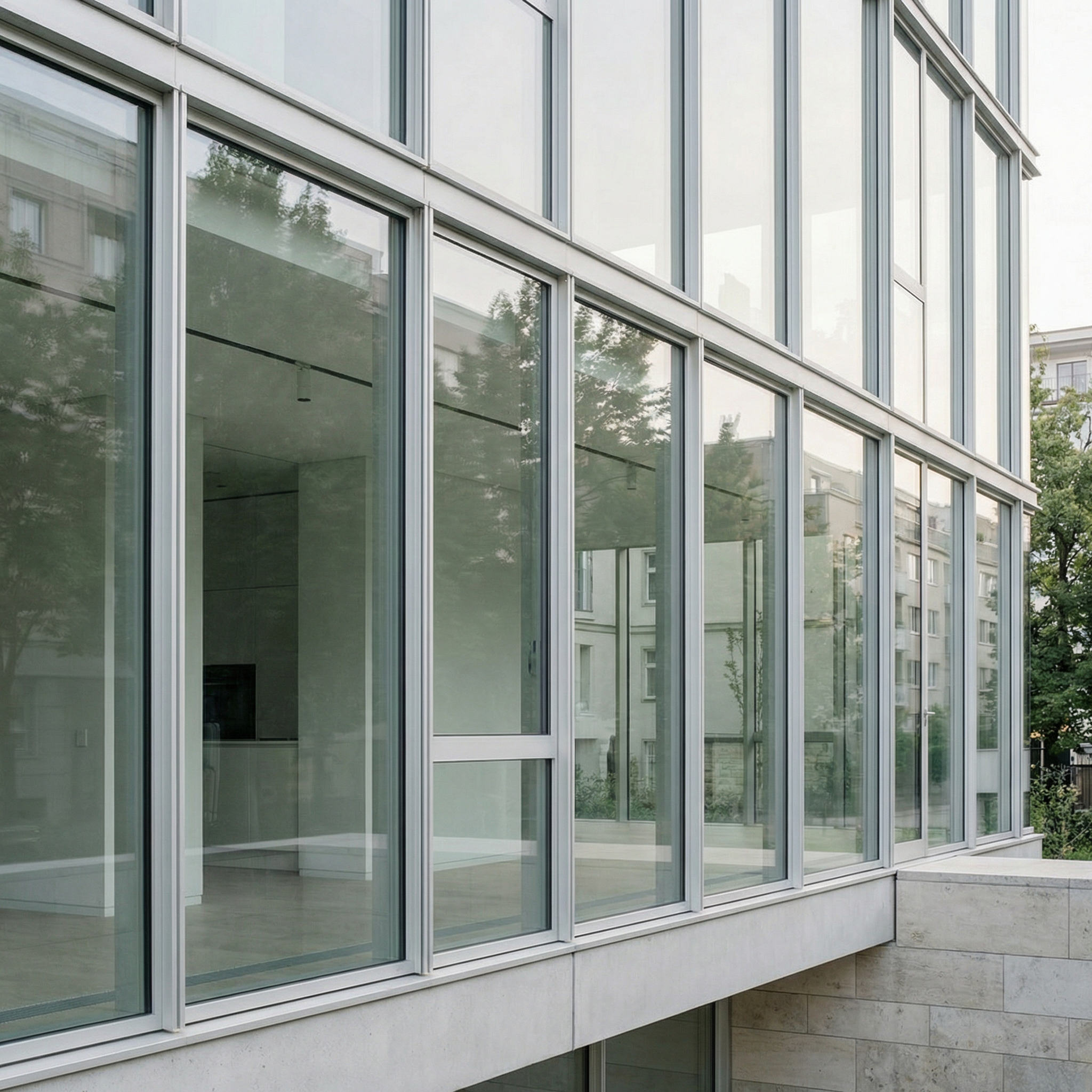 • El sistema en sí consiste en sólo paños fijos. Sin embargo es posible intercalar carpinterías de distintas tipologías, variando su vista exterior en función de las mismas: